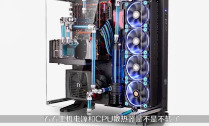 2.接着打开主机机箱盖,看看主机的电源和CPU散热器是不是不转了。如果风扇不转了,可能是风扇坏了,请更换新的风扇。